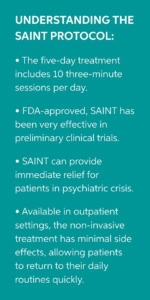 Approved by the U.S. Food and Drug Administration, the SAINT protocol shows significant promise for individuals who have not responded to traditional treatments. Unlike standard TMS therapy, which typically requires daily sessions over several weeks, SAINT delivers treatment over a much shorter timeframe, an approach that is especially valuable for patients experiencing psychiatric crises. Available in outpatient settings, the non-invasive treatment has minimal side effects, allowing patients to return to their daily routines quickly.